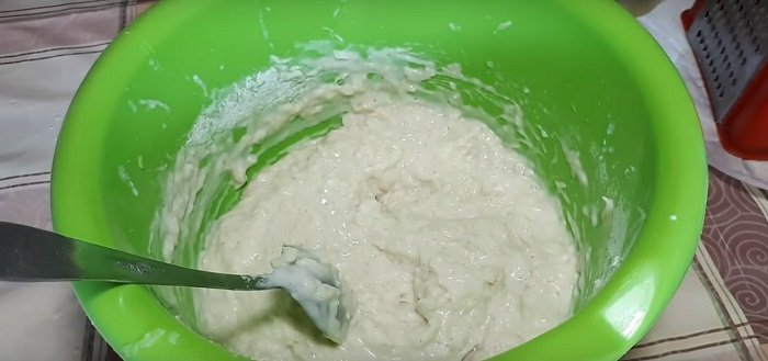 Po wymieszaniu dodaj jeszcze  kefir, mąkę, jajko oraz proszek do pieczenia. Ponownie wszystko wymieszaj tak, by powstała masa gęsta o konsystencji śmietany. Dopraw pieprzem i solą. Znów starannie wymieszaj. Odstaw całość na siedem minut.