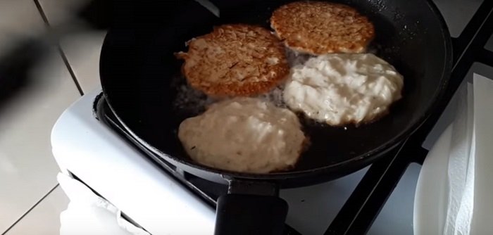 Olej rozgrzej na patelni i umieść na niej placki, tak jak robi się to w przypadku placków ziemniaczanych. Usmaż po obu stronach aż uzyskają piękny, złocisty odcień.