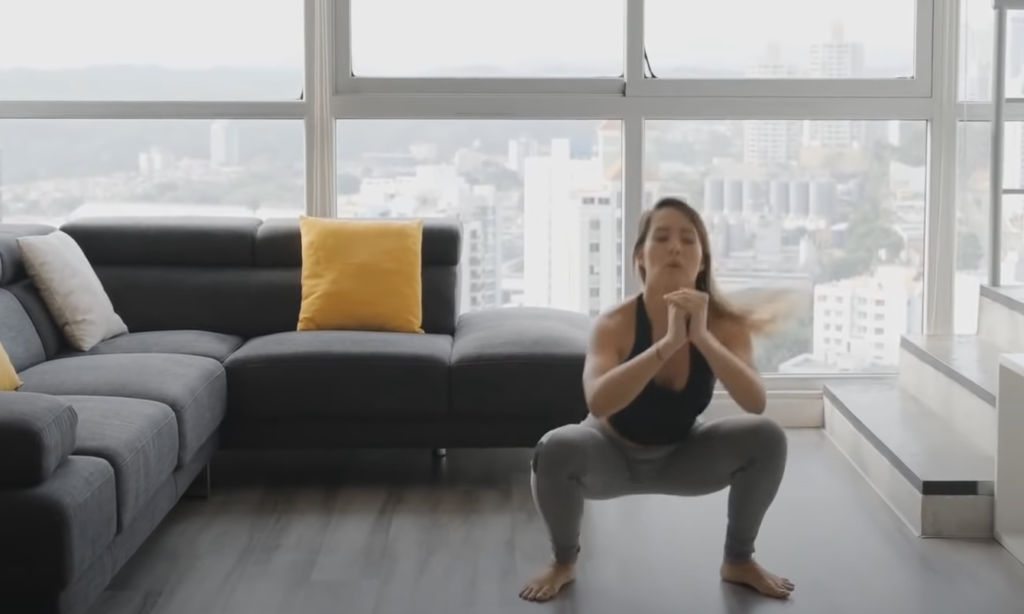 Wykonuj przez 30 sekund głębokie przysiady z szeroko rozstawionymi nogami