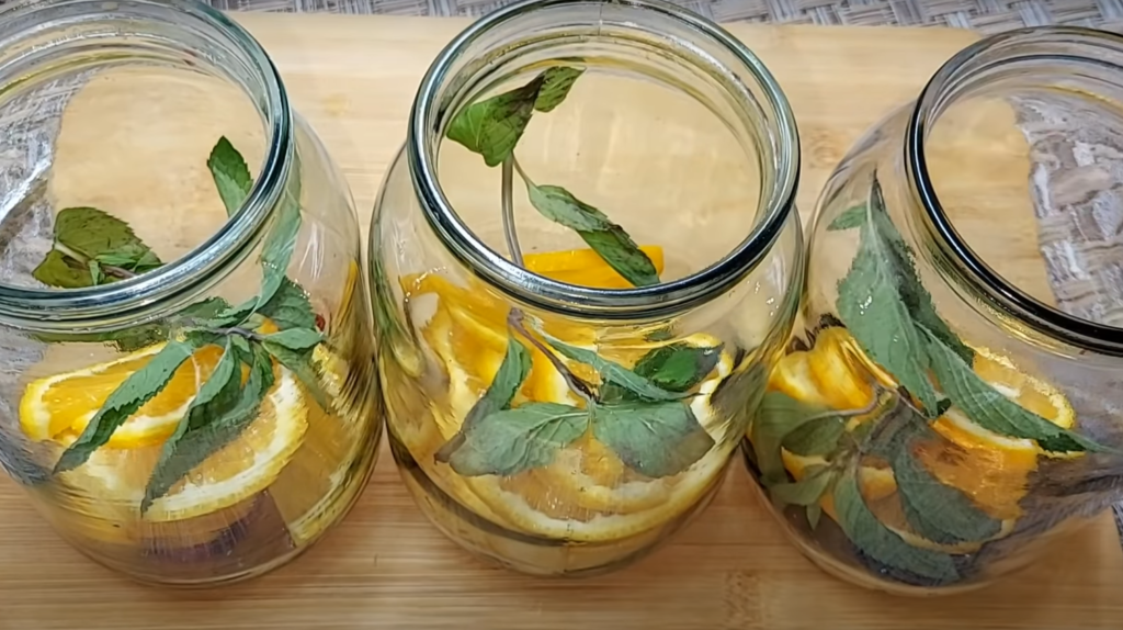 Do pojemników dodaj plasterki pomarańczy i gałązkę mięty.