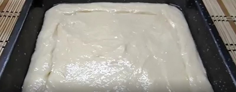 Blachę do pieczenia przykryj natłuszczonym olejem pergaminem i podsyp delikatnie mąką. Wylej 1/2 ciasta, wyłóż swój ulubiony dżem i pokryj pozostałym ciastem. Powierzchnię wyrównaj szpatułką lub łyżką.