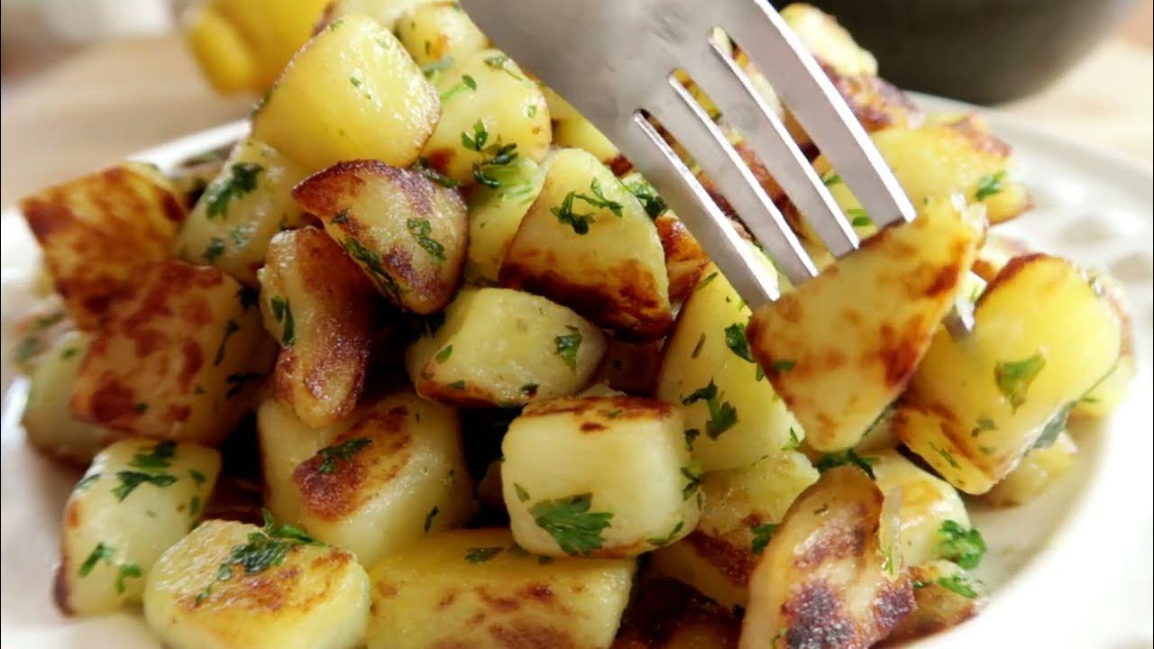 Wlej ziemniaki na rozgrzaną patelnię i gotuj przez 30 minut na średnim ogniu. Gotuj pierwsze 10 minut pod przykryciem, nie mieszając łopatką, aby nie zniszczyć kształtu ziemniaków.