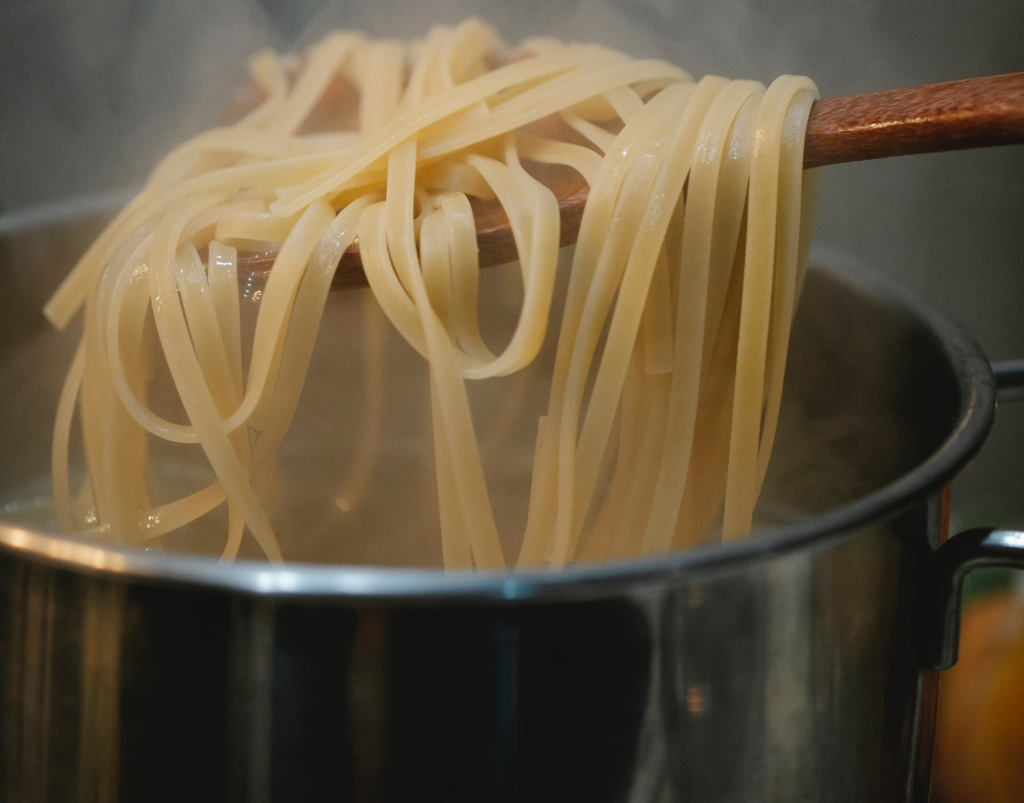 Ugotować makaron we wrzącej osolonej wodzie. Gotujemy.