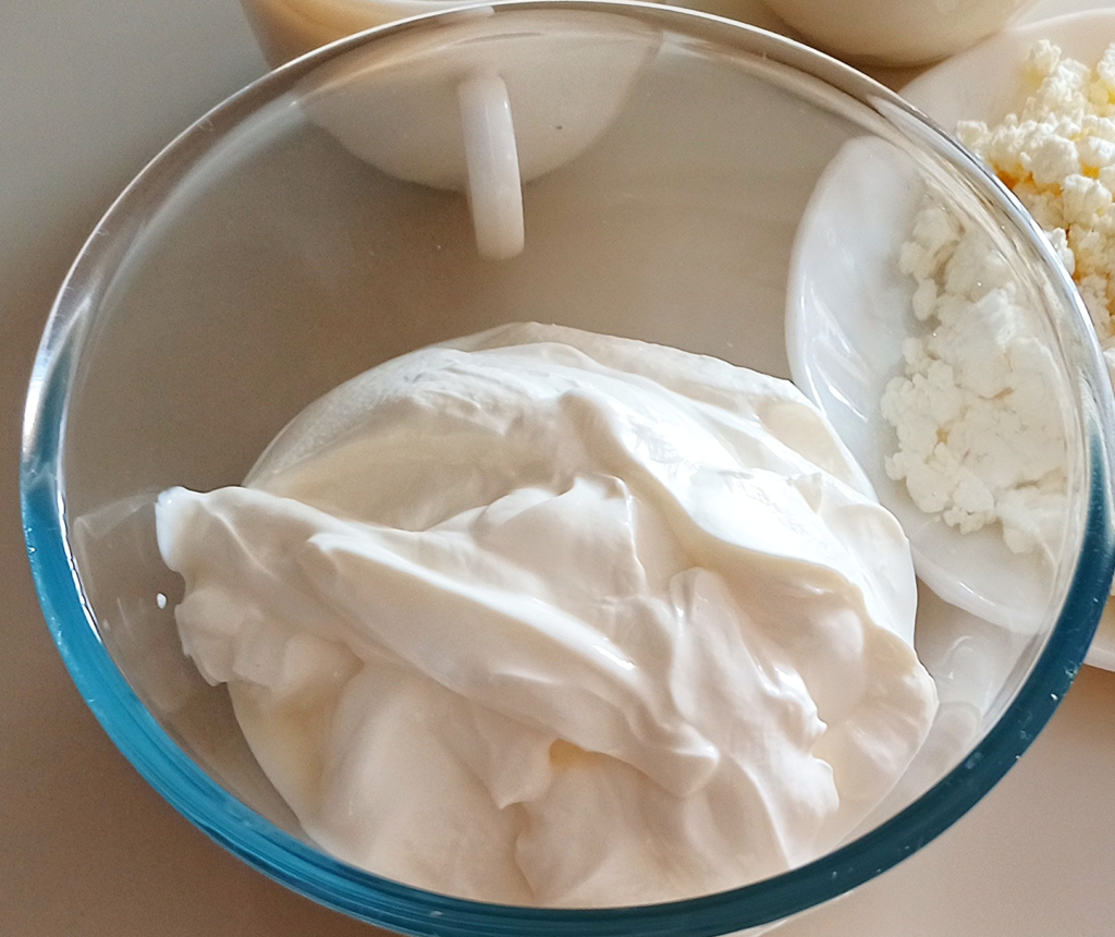Śmietanę wymieszać z przeciśniętym przez praskę ząbkiem czosnku. Dodaj do patelni. Wymieszać, doprawić i odstawić, nie gotować.