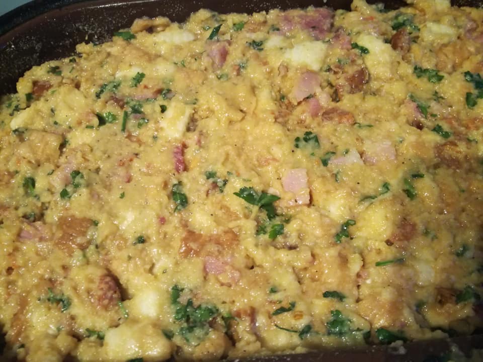 Roladę robi się w bardzo prosty sposób. Pierwszym etapem będzie posiekanie cebuli i doprawienie jej ziołami. Potem należy usmażyć ją na złoty kolor. Następnie trzeba pokroić drobno rogale i namoczyć je w mleku. Pieczywo posyp przyprawami oraz dodaj do niego przeciśnięte przez praskę ząbki czosnku.