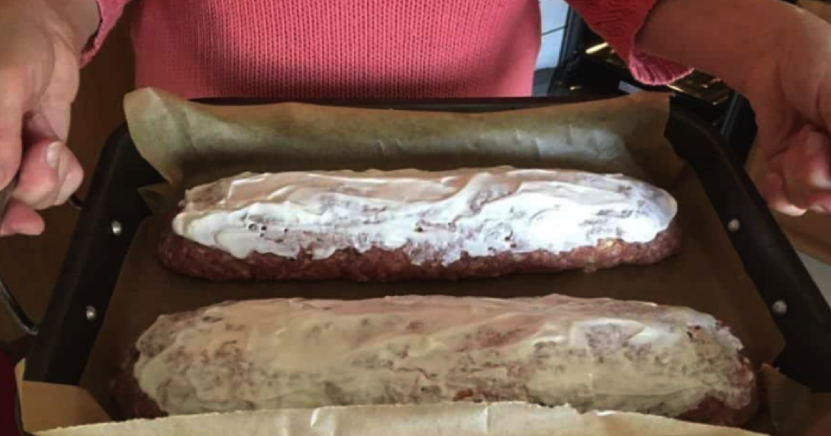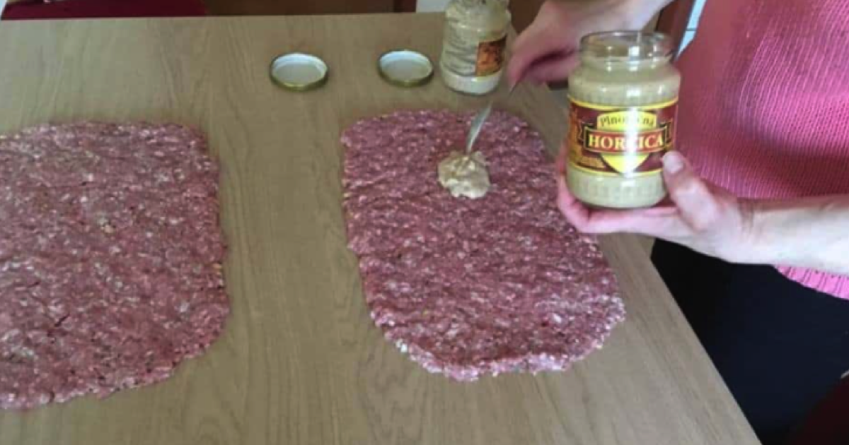 Schłodzone mięso podziel na dwa równe kawałki. Najlepiej jakby przybrały kształt prostokątów. Posmaruj je ketchupem lub musztardą i posyp startym serem.