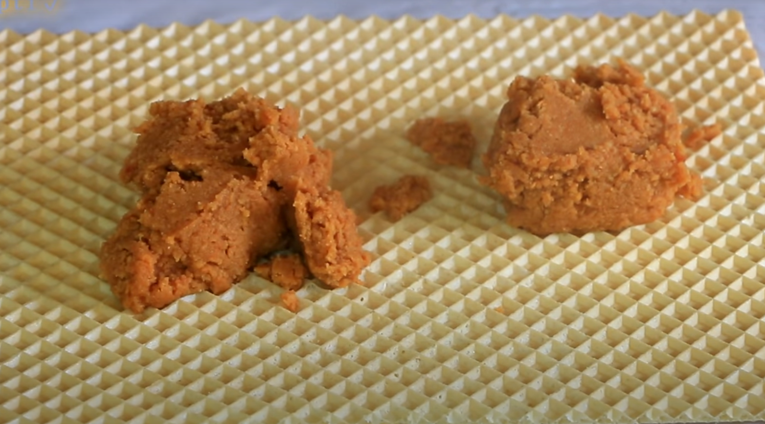 Rozpocznij od umieszczenia arkusza waflowego między dwiema wilgotnymi ściereczkami, aby zmiękł – zostaw na około 30 minut. W tym czasie przyrządź karmel w garnku, mieszając cukier.