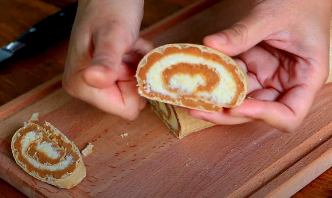 Teraz zawijaj roladę w papier do pieczenia i odłóż na chwilę w chłodne miejsce, najlepiej do lodówki. Po schłodzeniu jest gotowa do pokrojenia i podania.