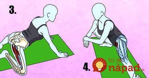 Na macie usiądź wygodnie i szeroko rozstaw stopy. Na ile pozwoli Ci Twoje ciało pochyl się do przodu. Wykonuj to ćwiczenie kilka razy. Rozciągnie ono kręgi kręgosłupa (można wydłużyć kręgosłup nawet o 7 cm), odmładza nerwy kręgosłupa, zwłaszcza odcinka lędźwiowego, oraz wzmacnia i odmładza mięśnie brzucha i dolną część pleców.