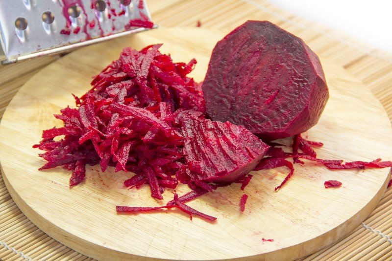 Buraki należy ugotować, a następnie zetrzeć je na tarce o grubszych oczkach. Innym sposobem jest pokrojenie ich na mniejszą kostkę.