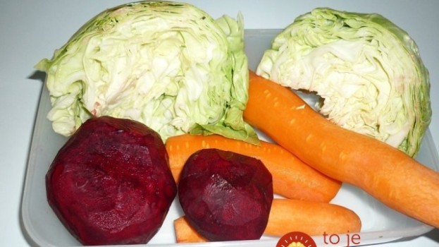 Zetrzyj wszystkie warzywa na tarce o grubych oczkach. Wymieszaj chrzan i sok z cytryny. Możesz podawać jako dodatek do dania lub samodzielnie.