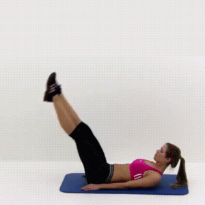 Leżąc na podłodze, dłonie umieść wzdłuż ciała. Na przemian podnoś każdą nogę, upewniając się, że stopa nie dotyka podłogi. Wymieniaj nogi w szybkim tempie, napinając mięśnie brzucha i oddychając regularnie.