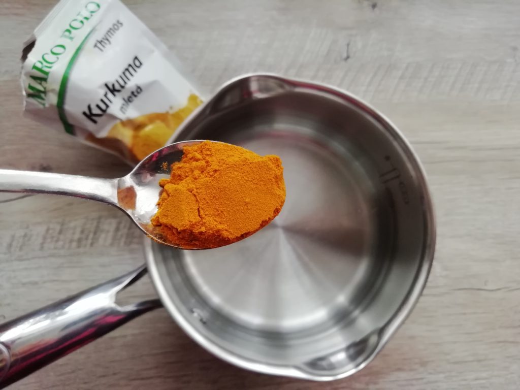 Następnie w garnku łączymy imbir, czosnek, cebulę i zalewamy całość 350 ml wody. Po zagotowaniu dodajemy kurkumę i mieszamy. Przykrywamy i gotujemy przez około 10 minut. Po zdjęciu z ognia, płyn przecedzamy i przelewamy do naczynia, które można szczelnie zamknąć. Na koniec dodajemy do syropu kilka plasterków cytryny, zamykamy i umieszczamy w chłodzie.