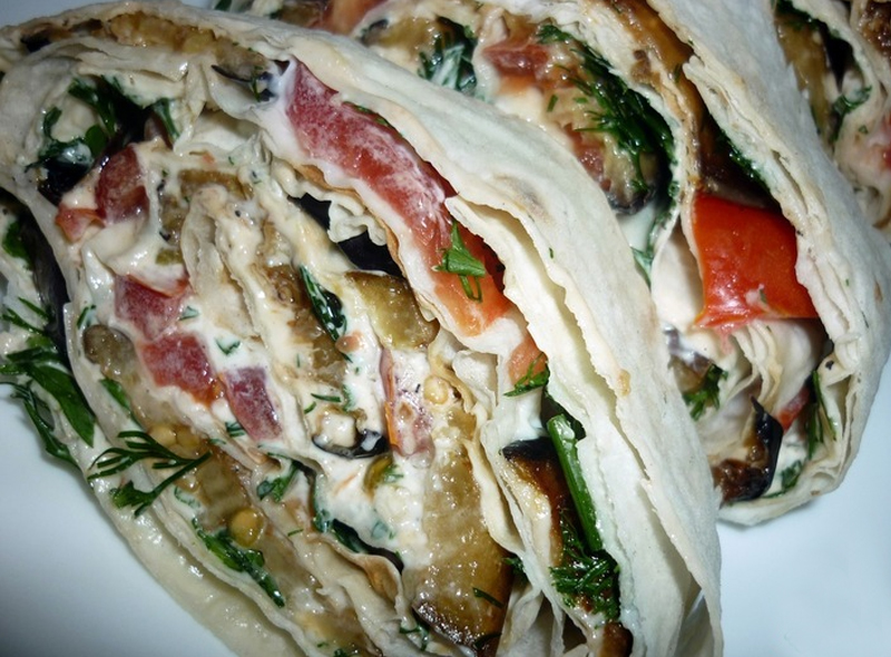 Pomysł 1. Twarożek biały zmieszaj ze śmietaną lub jogurtem i pociętym świeżym koprem. Dodaj do tego przeciśnięty przez praskę czosnek, sól i pieprz do smaku. Tak przygotowane nadzienie nakładaj dowolnie na tortilli. Ciasto złóż w rulon lub trójkąty i podawaj na stół.