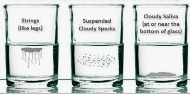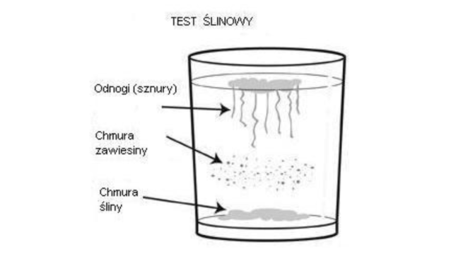Teraz obserwujemy to, co dzieje się z naszą śliną. Jeżeli gładko w jednej strudze spływa i osiada na dnie, to wszystko w porządku.
