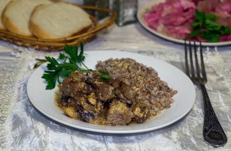 Pieczarki można zastąpić dowolnymi grzybami. Miękką, soczystą wołowinę można podawać z tłuczonymi ziemniakami, różnymi ziarnami, ryżem lub makaronem.