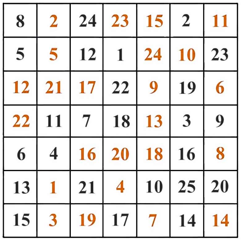 „Plansza z cyframi” to kolejne ćwiczenie, które polega na lokalizowaniu liczb od 1 do 25 w jak najkrótszym czasie, utrzymując skupienie wzroku na środku planszy. Wymaga to koncentracji i rozwija umiejętność szybkiego identyfikowania wzorców.