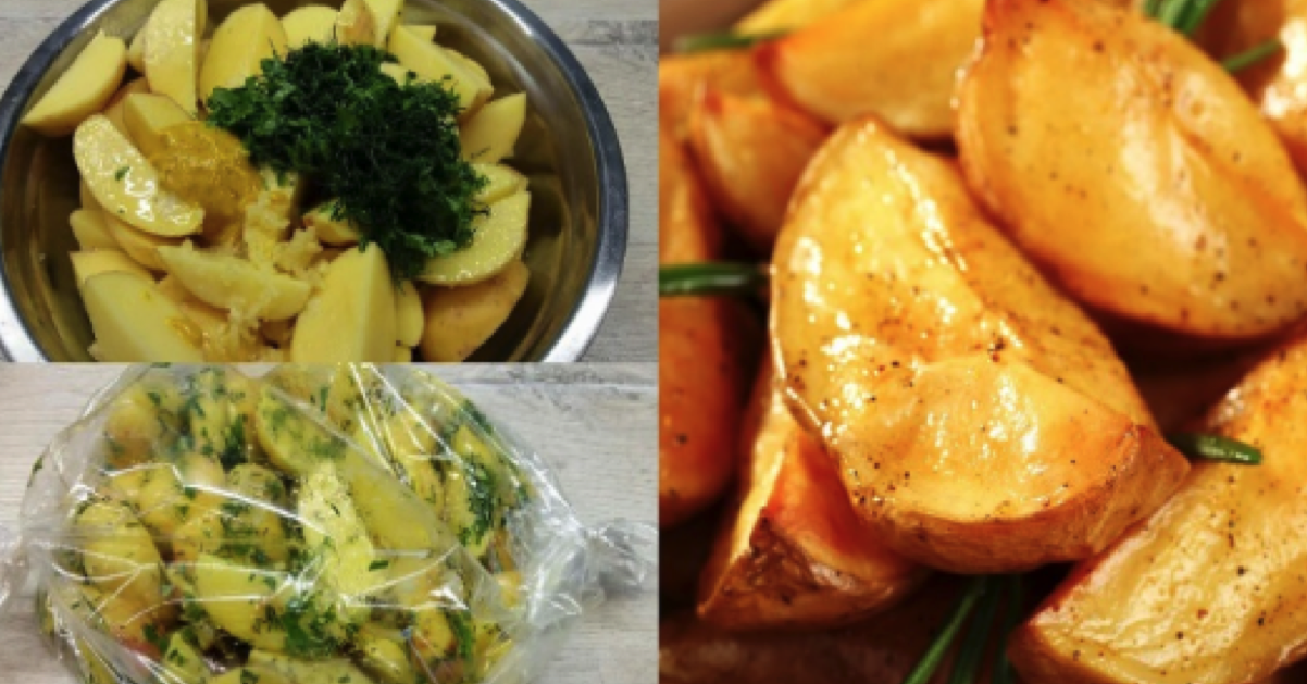Ziemniaki wrzucamy do worka i nakłuwamy go w paru miejscach. Tak położone ziemniaczki na blaszce pieczemy w temperaturze 180-200° przez 40-60 minut. Aby Twoje ziemniaki miały piękną złotą skorupkę rozetnij na ostatnie dziesięć minut worek od góry i przełącz Piekarnik na tryb grilla.