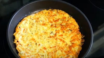 Na patelni rozgrzej olej i rozprowadź przygotowaną masę na całej jego powierzchni. Smaż ziemniaki z każdej strony przez około 4 minuty na małym ogniu. Powtarzaj proces, aż uzyskasz mieszaninę. Uwaga: Przed każdym placem ziemniaczanym ponownie nasmaruj patelnię olejem.