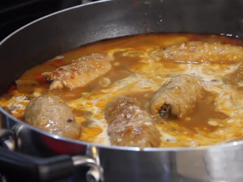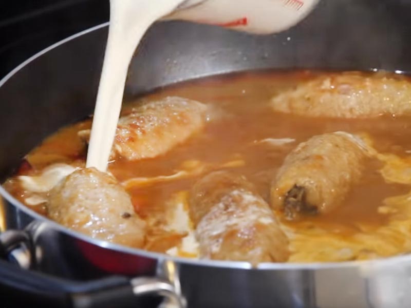 Duś pod przykryciem na małym ogniu przez 40 minut. Danie gotowe!!! Te smakowite roladki smakują z każdym dodatkiem i surówką. Są pyszne! Palce lizać! Twoja rodzina je pokocha!!! Będą idealne na rodzinny niedzielny obiad!