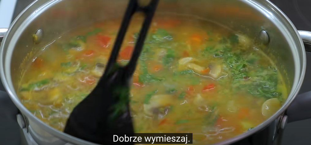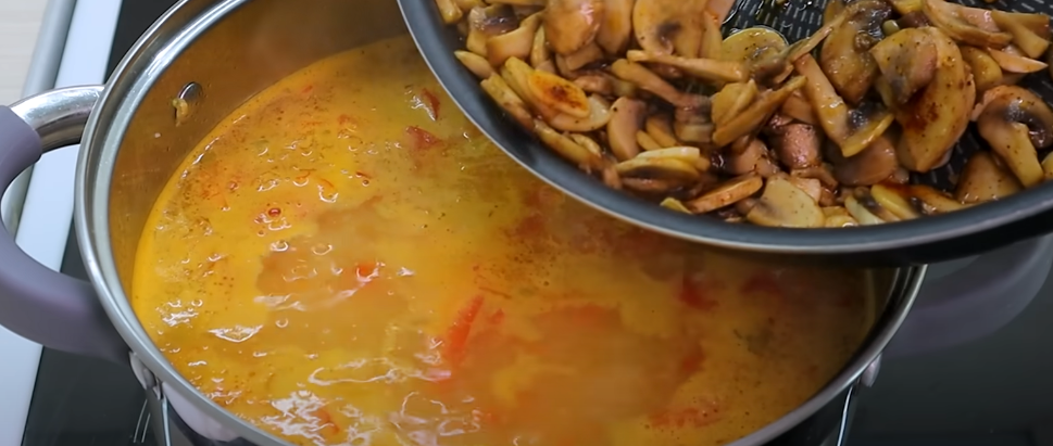 - Dodaj pokrojone grzyby do zupy i gotuj przez kolejne 10 minut.